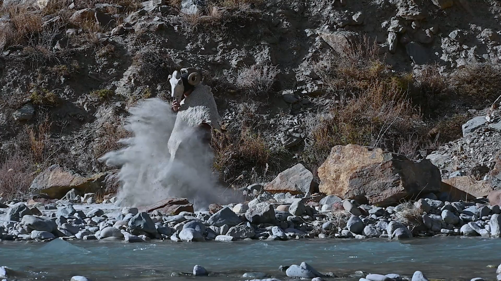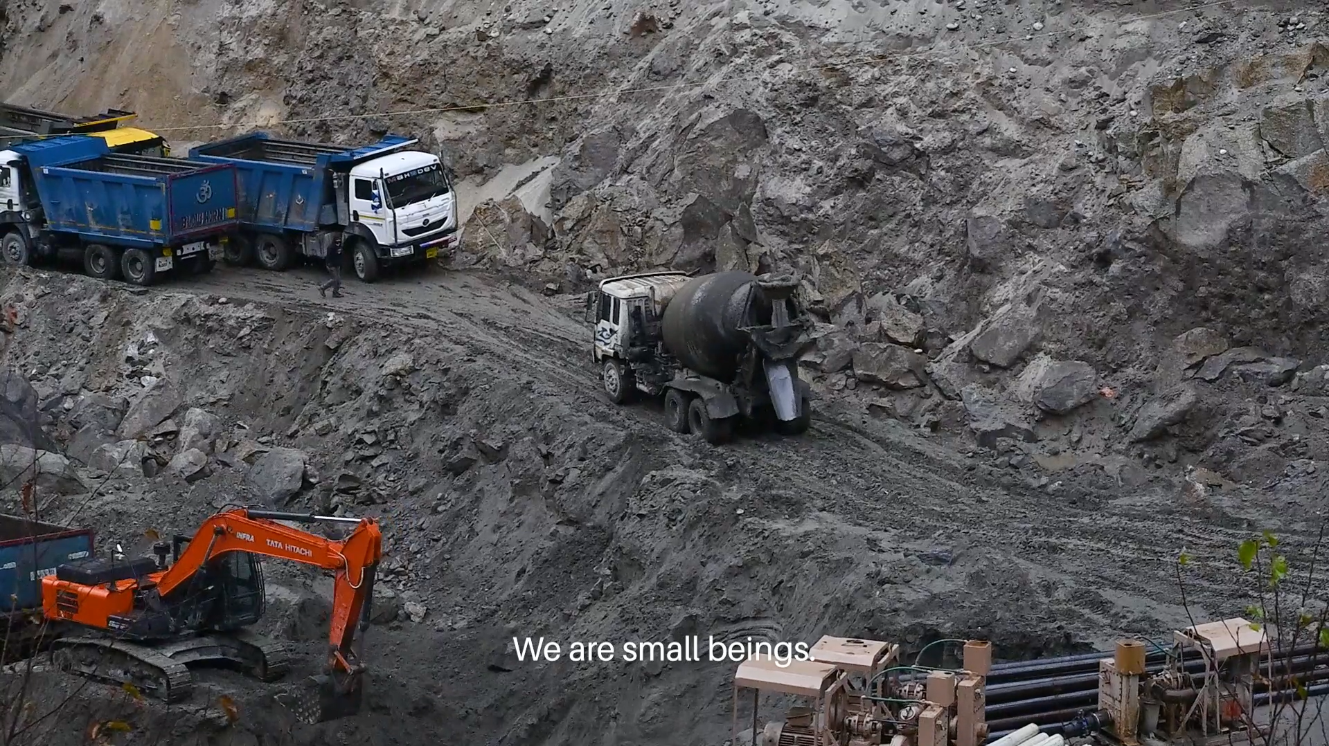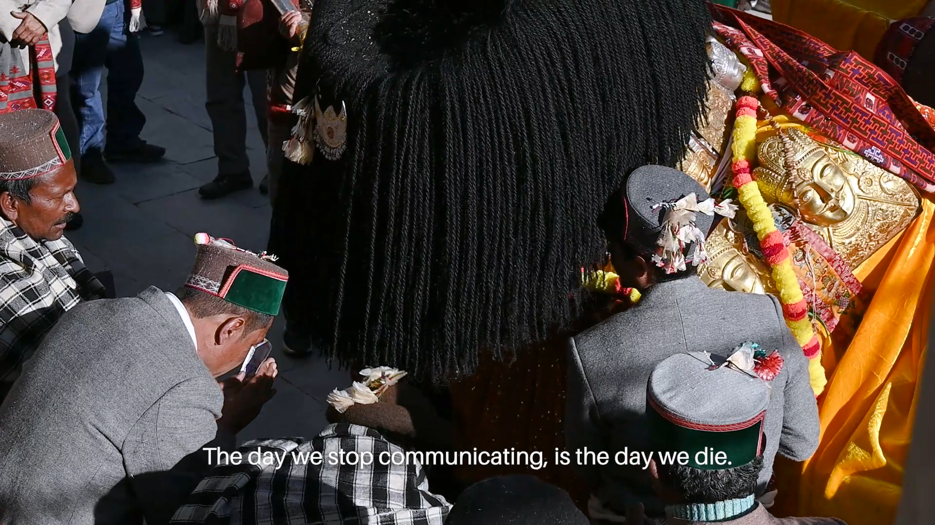 The word मटिङ् (Kinnauri, Ma Tinǵ) literally means the earth. This short film centers on mythological figures from the Kinnauri folklore, who act as advocates for the immediate environment and local ecology, making their presence felt through intentional disruptions to the ongoing ecological degradation caused by rapid construction. While within the tribe, one can observe a form of eco-egalitarianism through these manifestations, externally, the ecological equilibrium of the landscape faces threats from corporate greed and the ongoing climate crisis within the region.